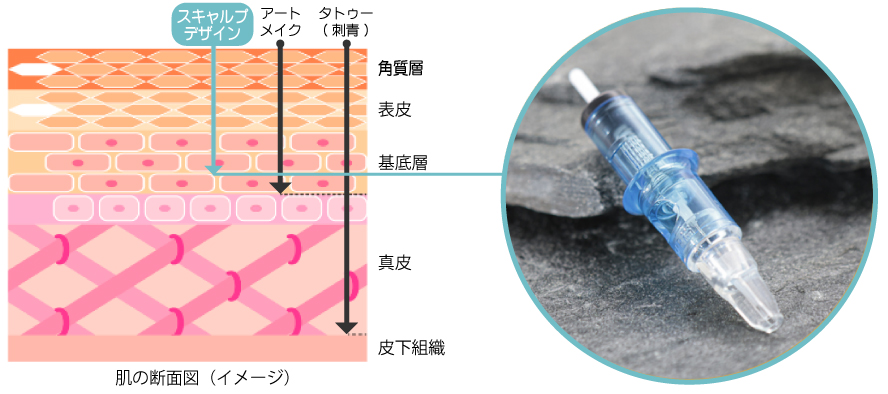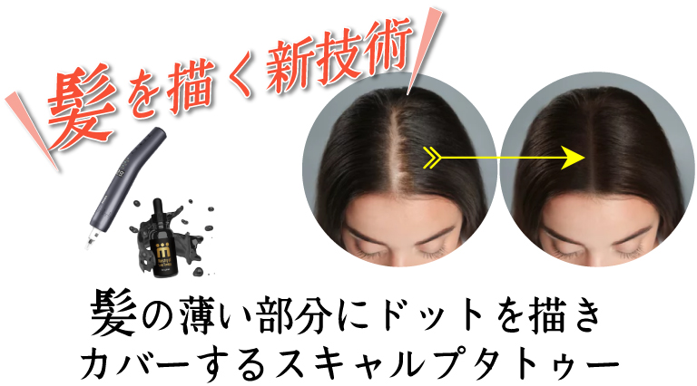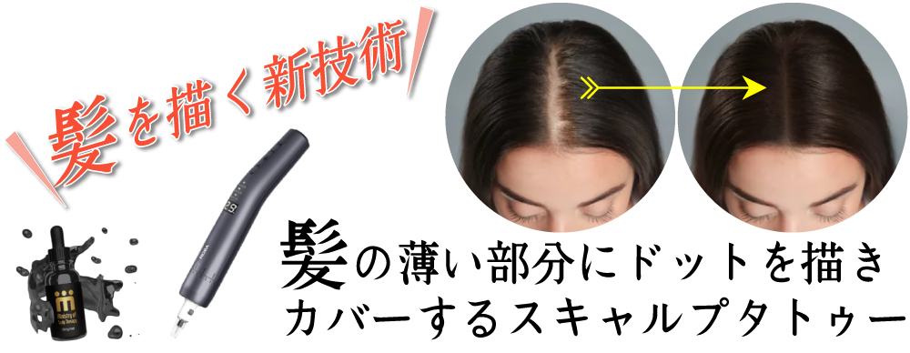 専用のマイクロニードルとインクを用いて頭皮の浅部に着色し、地肌の露出を軽減させるという新しい技術です。